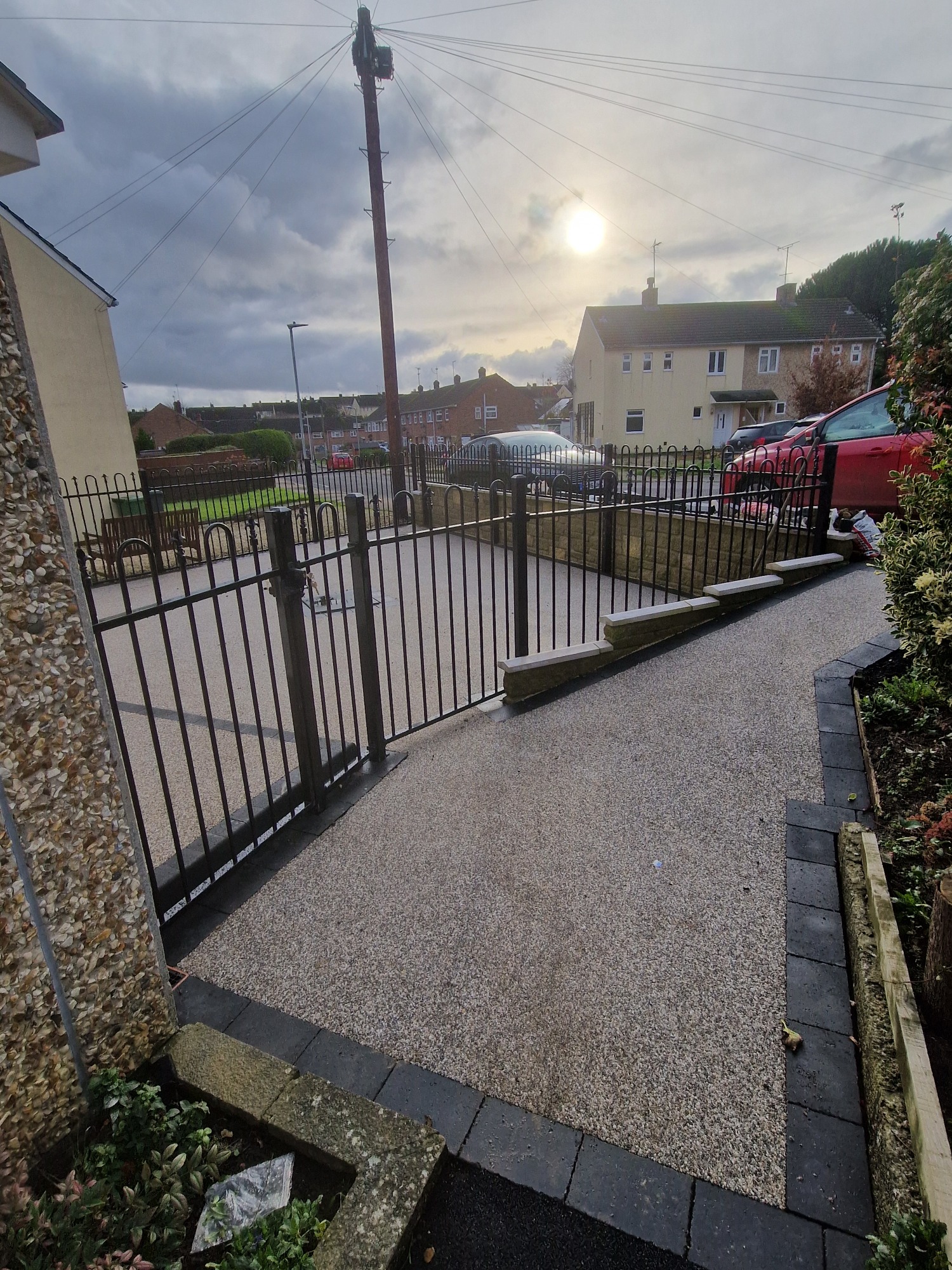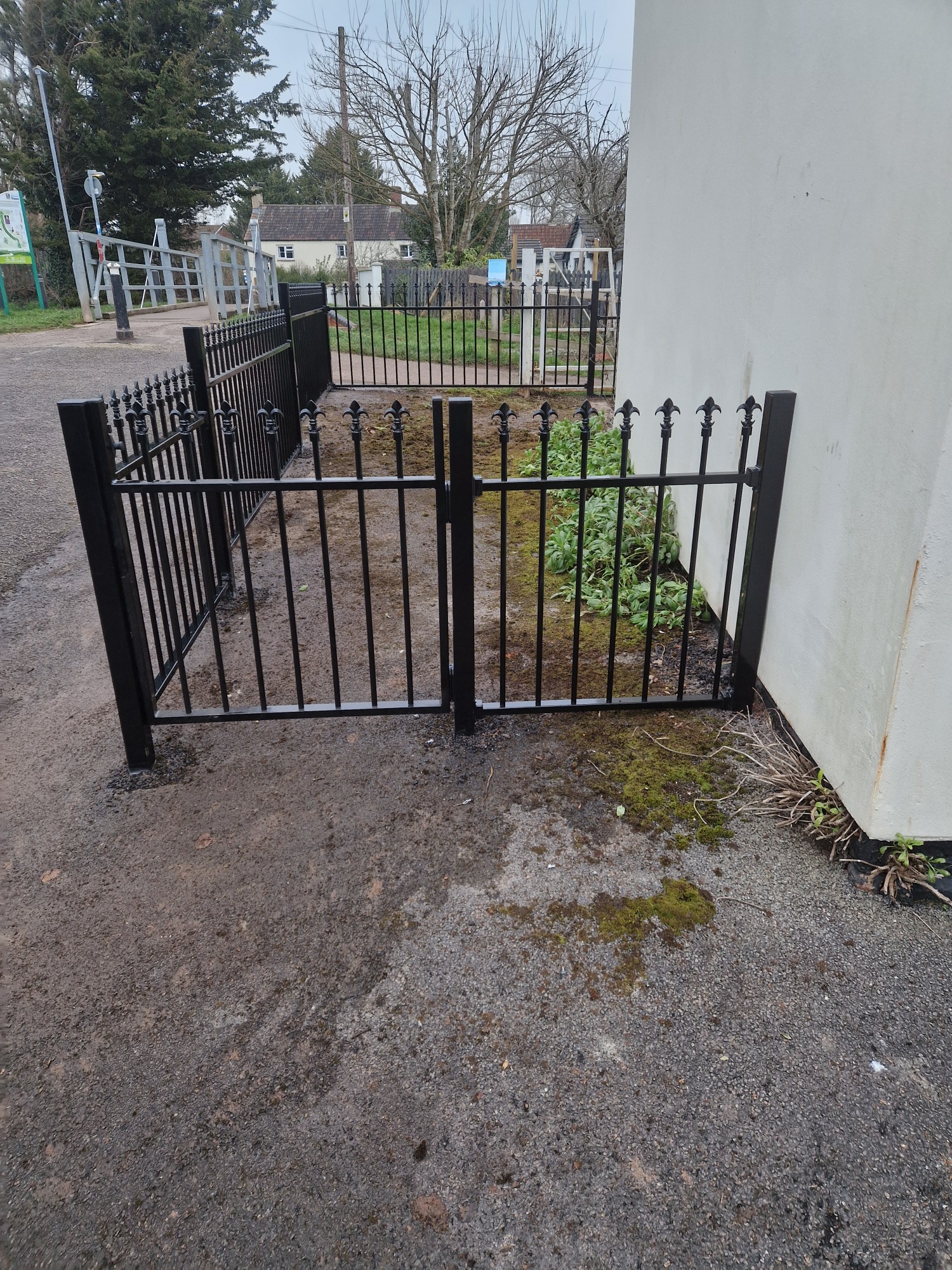 Railings refers to the metal products shown on this page, a range of colours and styles are available. The railings shown are supplied by Colourfence.