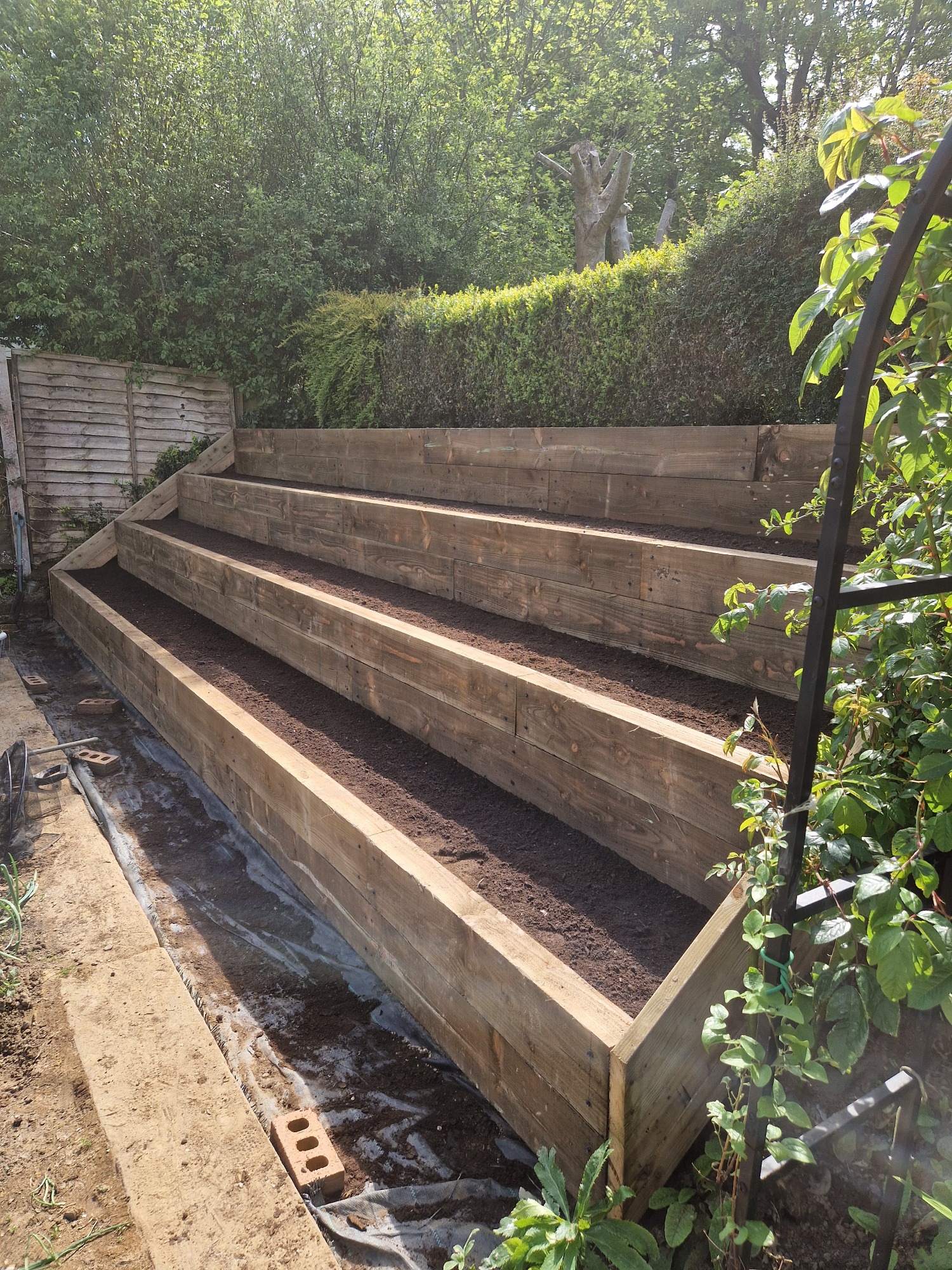 There are 3 main 'styles' I install sleepers in. These being planter boxes, tiered beds and 'walling'.